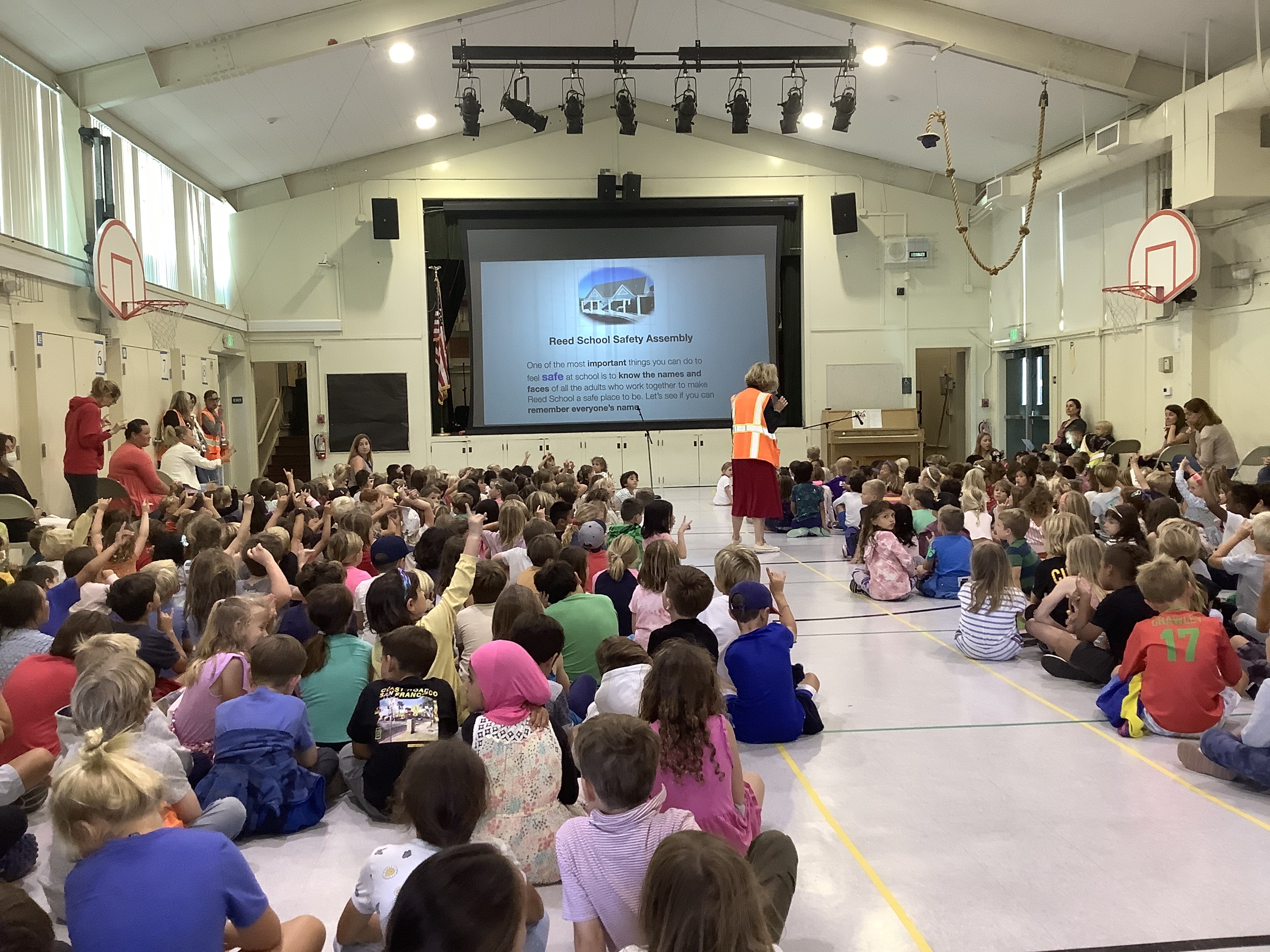 Today, at our schoolwide Community Time assembly, we watched our “Names & Faces of Reed School'' slideshow. The message to our students was, “These are the adults who work together to keep us safe at school.” Be sure to ask your child all about it.