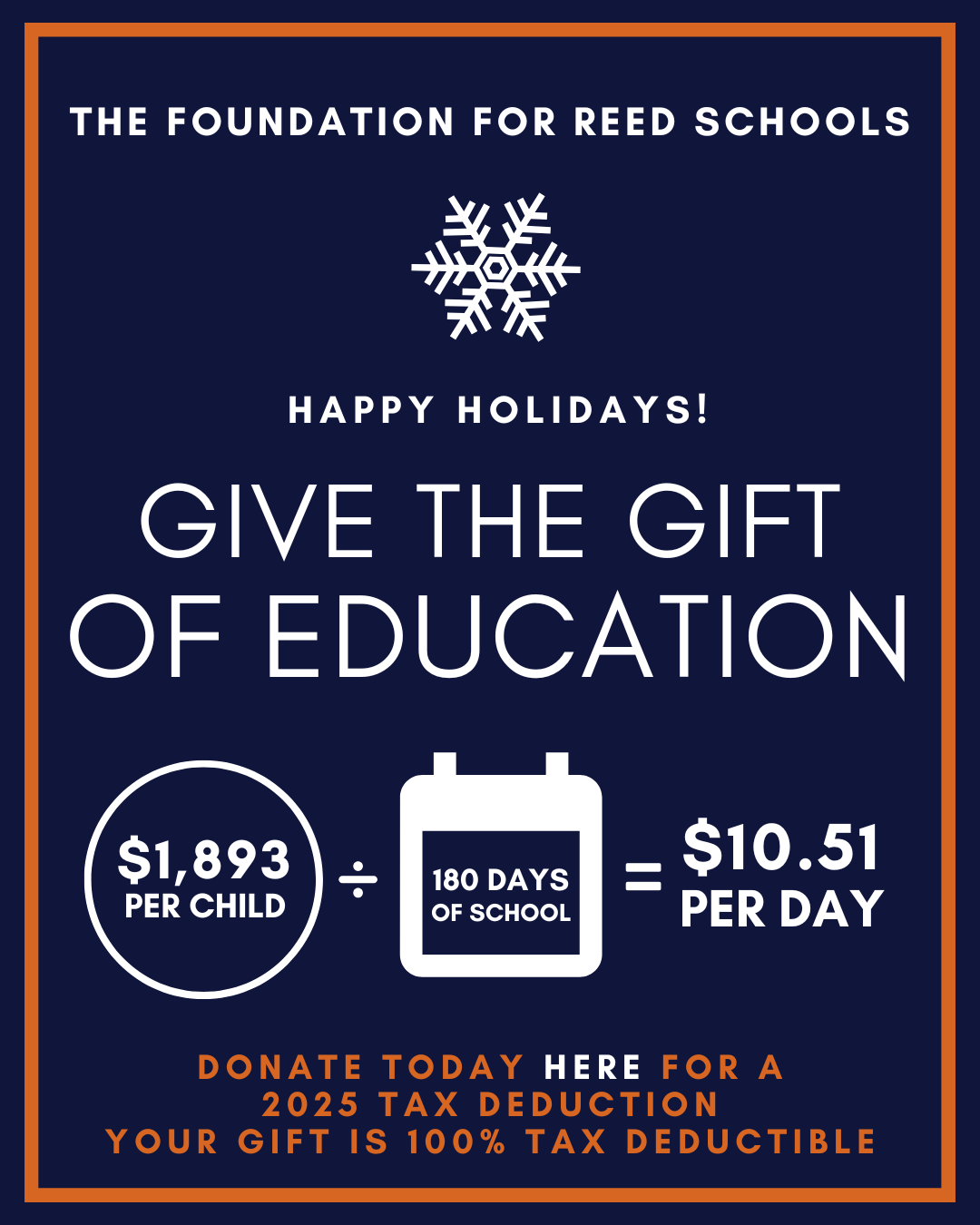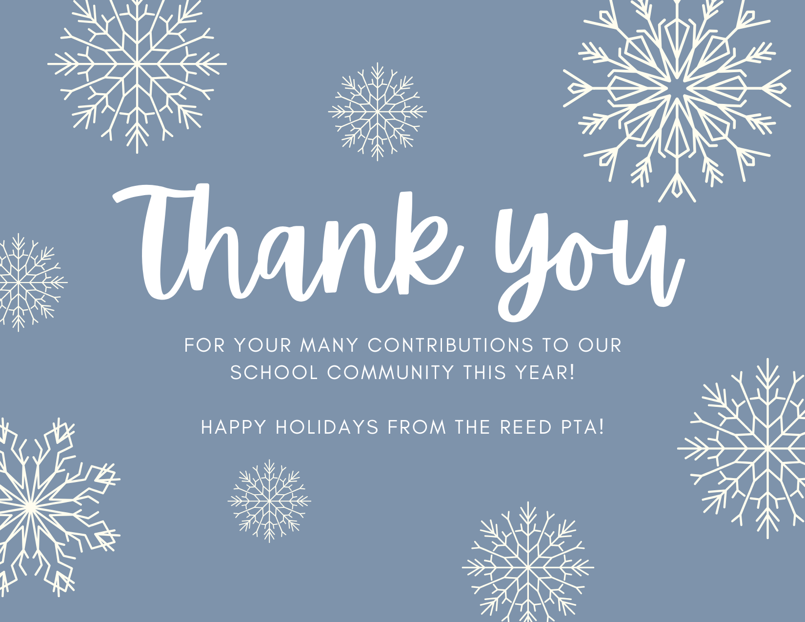 Reed PTA Meeting (no December meeting) Wednesday, January 14 at 9:00am in Room 10 | MLK Holiday (NO SCHOOL) Monday, January 19 |