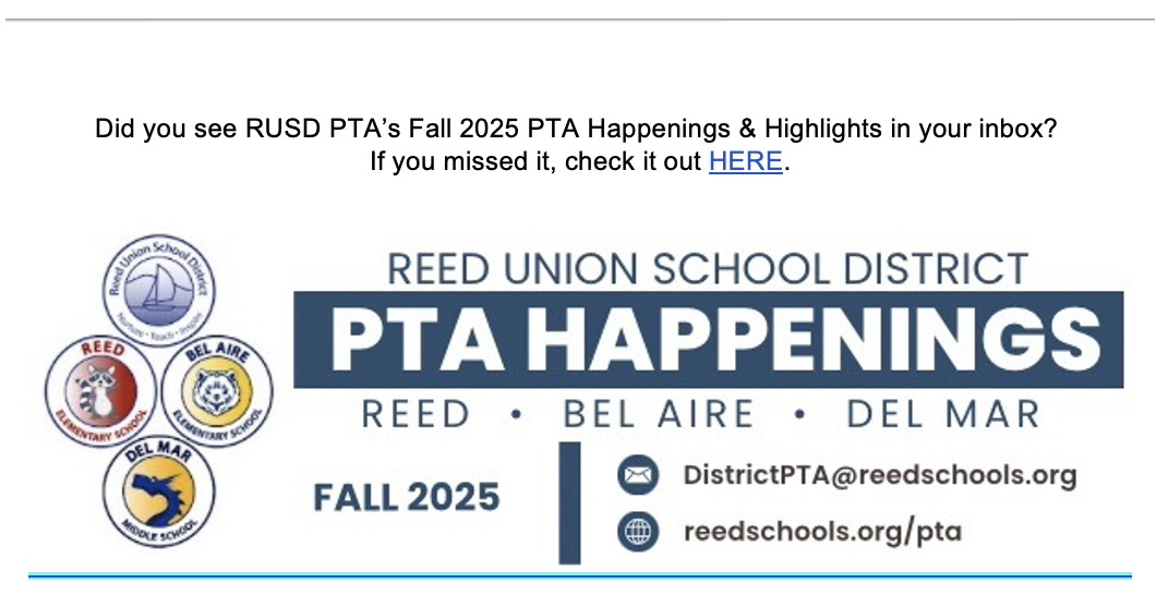 December 10th--tonight!: Redwood High School Student Panel/Info Night at Del Mar. 5:30-6:30 pm. Del Mar Gym. See details below under PTA News